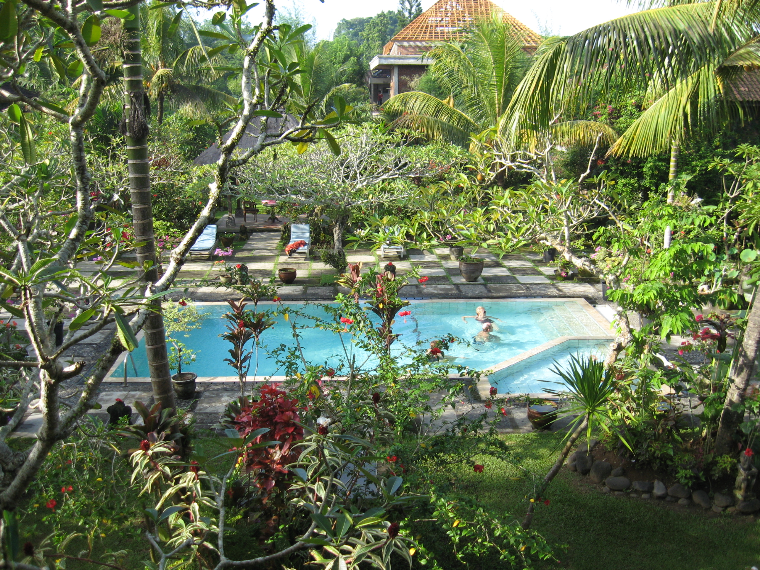 Our balcony overlooked the swimming pool at the Ubud. As beautiful as the gardens were, the rooms at the Ubud Inn were a bit worse for wear. We decided to check out after one night and moved up the street a bit.