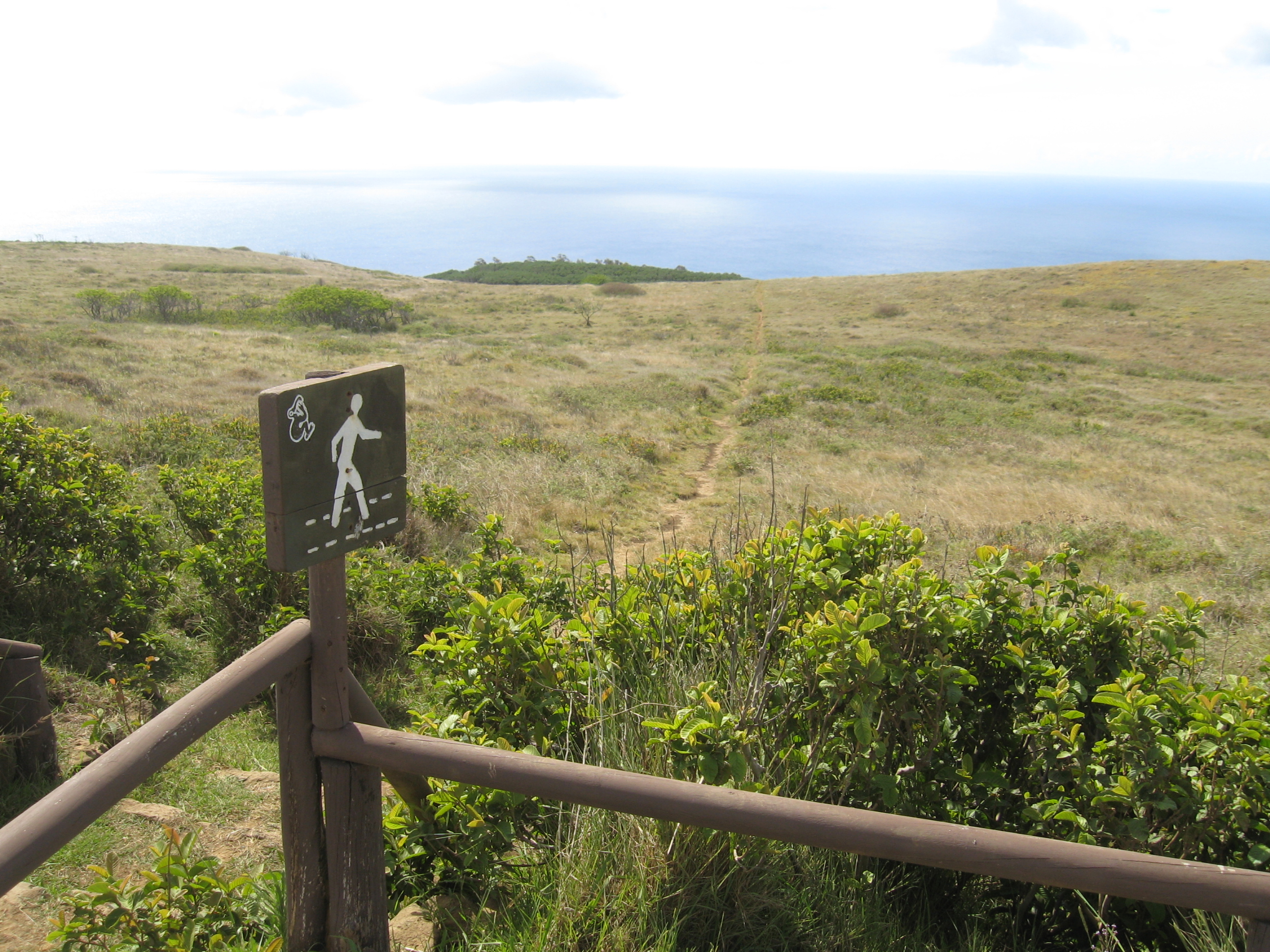 And there it is, clearly marked. We followed this path, which had markers like this several hundred meters apart, and arrived back in Hanga Roa about 4.5 hours after setting out for a 'short' walk.