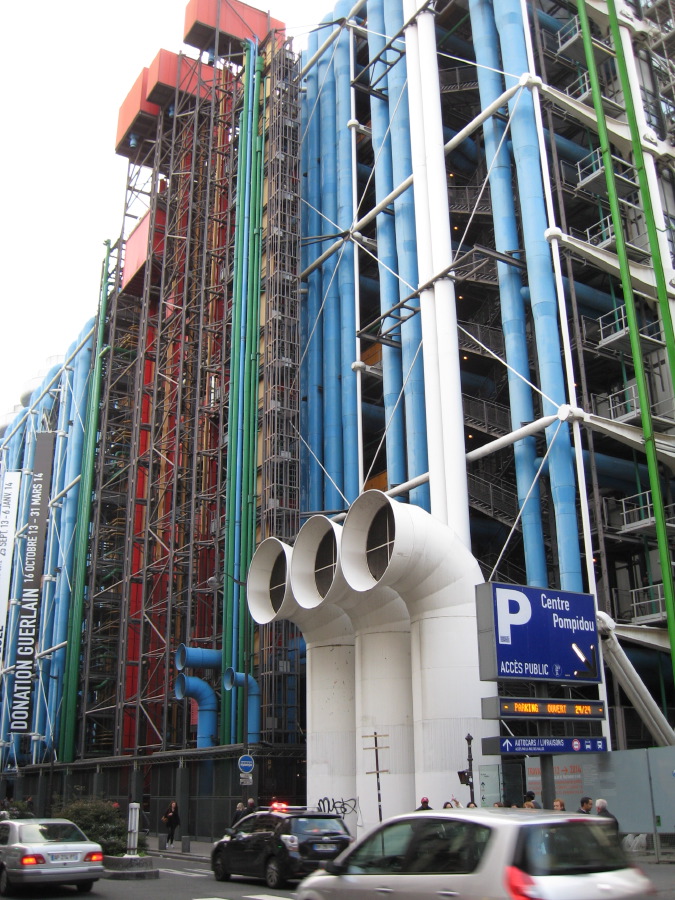 Centre Georges Pompidou - with colourful utility pipes outlandishly located on the outside, houses art an dfilm exhibitions.